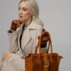 Hecho con cuero de vaca, tiene 3 divisiones y mide 42*26*15cm.