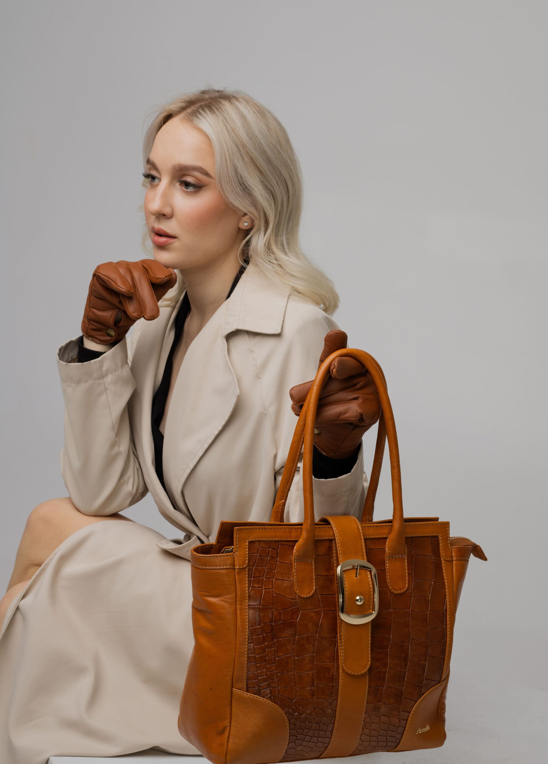Cartera de cuero espaciosa practica y elegante con grabado de lagarto.
